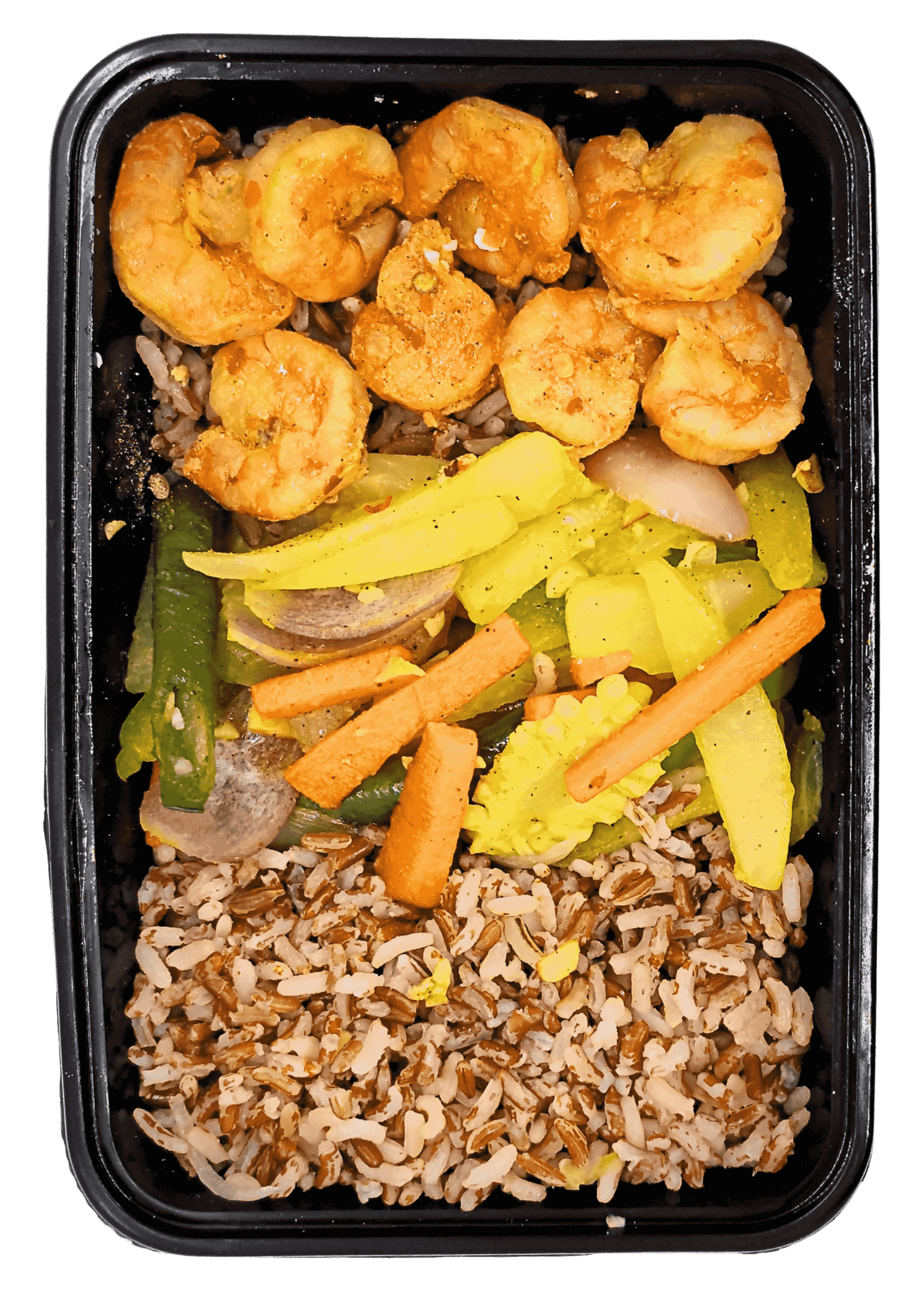 Prepared with Brown Rice (110g), Black Tiger Prawn with Butter(80g-Raw), Carrot(15g), Papaya(120g), Green Capsicum (10g), Long Bean(6g), Baby Corn(8g), Oregano(2g), Black Pepper(5g), Mustard Oil (3ml) & Required Salad Ingredients. – Total Net Weight - 290g. Ready to Eat
